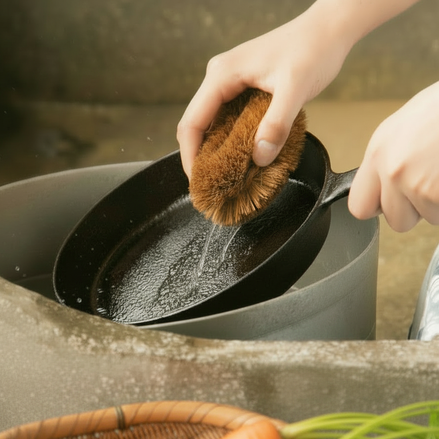亀の子束子 天然棕櫚清潔刷 1 號|清水洗淨|保養鐵鑊鐵鍋必備